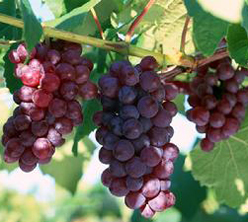巨峰葡萄:巨峰”葡萄為歐美雜交種,原產(chǎn)日本。1959年引入我國。因其適應(yīng)性強(qiáng),粒大,是我國南北許多省(自治區(qū))栽培最多的品種。巨峰果穗較大,平均穗重700克,最大穗重1500克,圓錐形或長圓錐形。果粒著生中等緊密,平均粒重12.5~13.3克,最大粒重23克,橢圓形或近圓形,黑紫色,果粉中等厚,皮厚,肉質(zhì)中等,汁多,味酸甜,有草莓香味,品質(zhì)中上等。